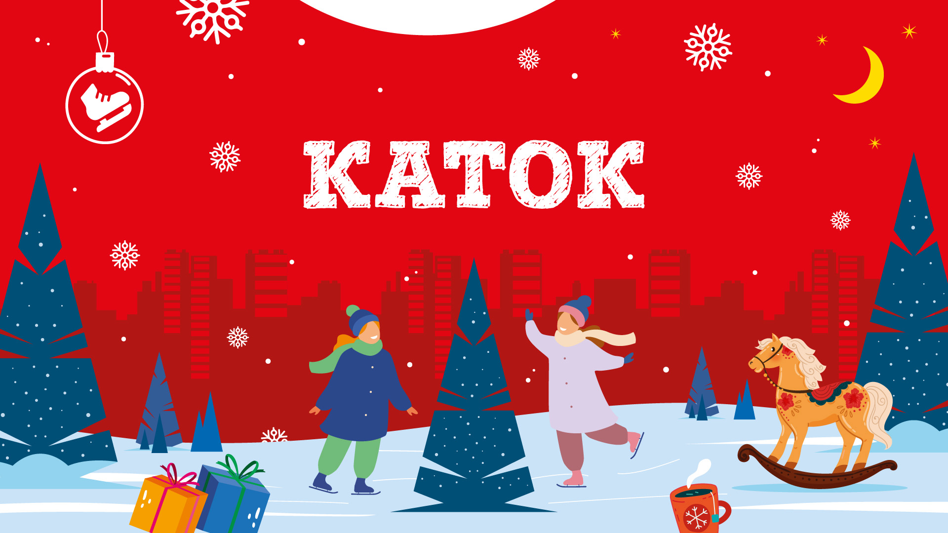 Открылся огромный праздничный КАТОК на парковке Планеты (напротив Центрального входа).